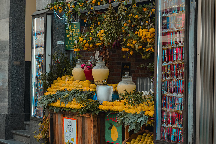 Mein Lieblingsbild entstand an einem Stand, wo es für mich ein Lebensgefühl einfängt. Die Zitronen strahlen wie kleine Sonnen, leuchten und etwas Magisches entsteht. Die großen Glasgefäße mit frischer Limonade und die grünen Zweige sorgen für ein harmonisches Farb- Licht- und Formenspiel. Der Stand wirkt mit soviel Liebe dekoriert und es ist zufällig immer etwas da, was man umbauen kann. Es ist das Limonade-Stand-Bild, das meine unbeschwerten Sommertage, Reisen in den Süden und den Duft von Zitrusfrüchten in warmer Luft erinnert. Es ist mein Lieblingsbild, da es mir frische, Leichtigkeit und eine unstillbare Sehnsucht gibt.