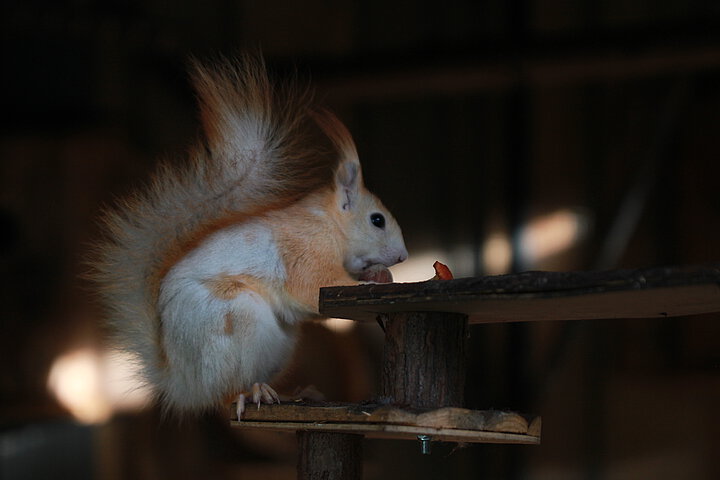 Dieses Bild ist mein Lieblingsbild, weil es ein besonderes Eichhörnchen zeigt. Durch sein fast weißes Fell fällt es sofort auf und kann sich schlechter verstecken als andere. Trotzdem sitzt es ruhig da und frisst. Das hat mich berührt, weil es zeigt, wie verletzlich man sein sein kann und trotzdem weitermacht.