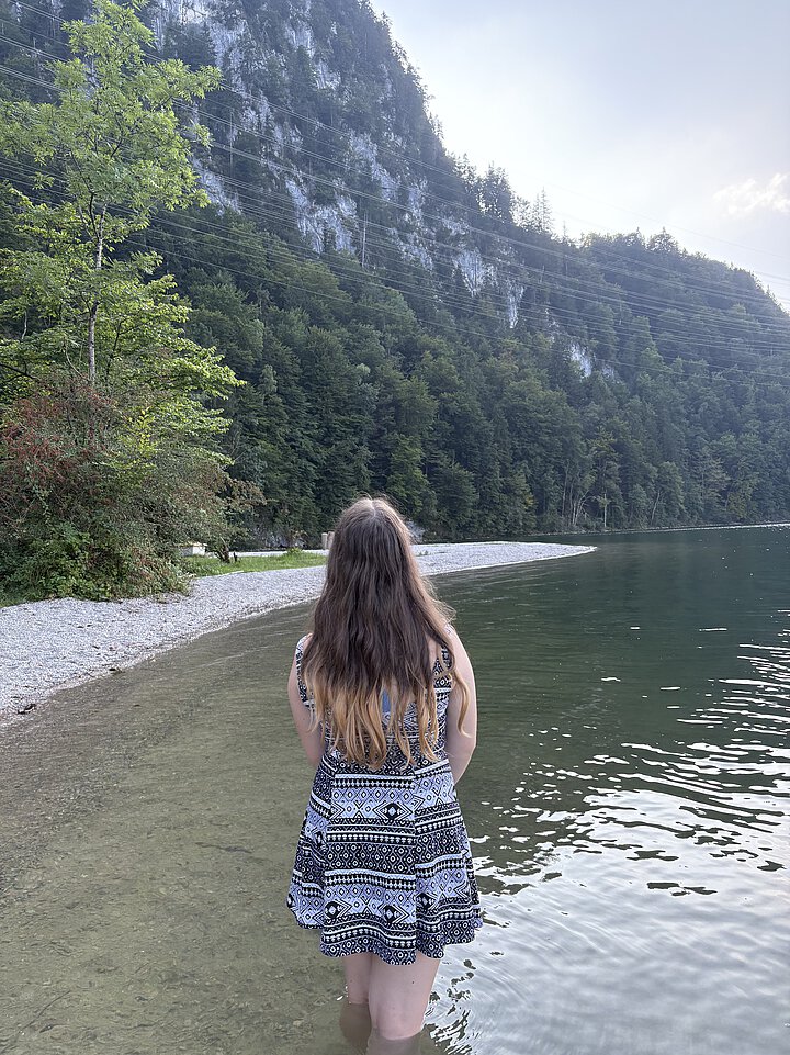 Das ist mein absolutes Lieblingsfoto, weil es einen richtig besonderen Moment mit meiner Familie zeigt. Das Bild ist am Kochelsee im Urlaub entstanden. Man sieht den schönen See mit den Bergen im Hintergrund und ich stehe im Wasser, von hinten fotografiert. An diesem Tag waren wir zusammen dort und hatten einfach eine richtig schöne Zeit. Wenn ich das Foto anschaue, denke ich sofort an meine Familie, an die entspannte Stimmung und daran, wie frei und glücklich ich mich gefühlt habe. Genau deshalb bedeutet mir dieses Bild so viel.